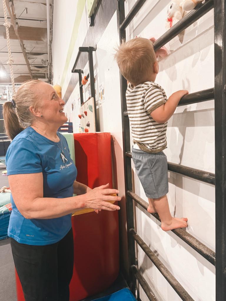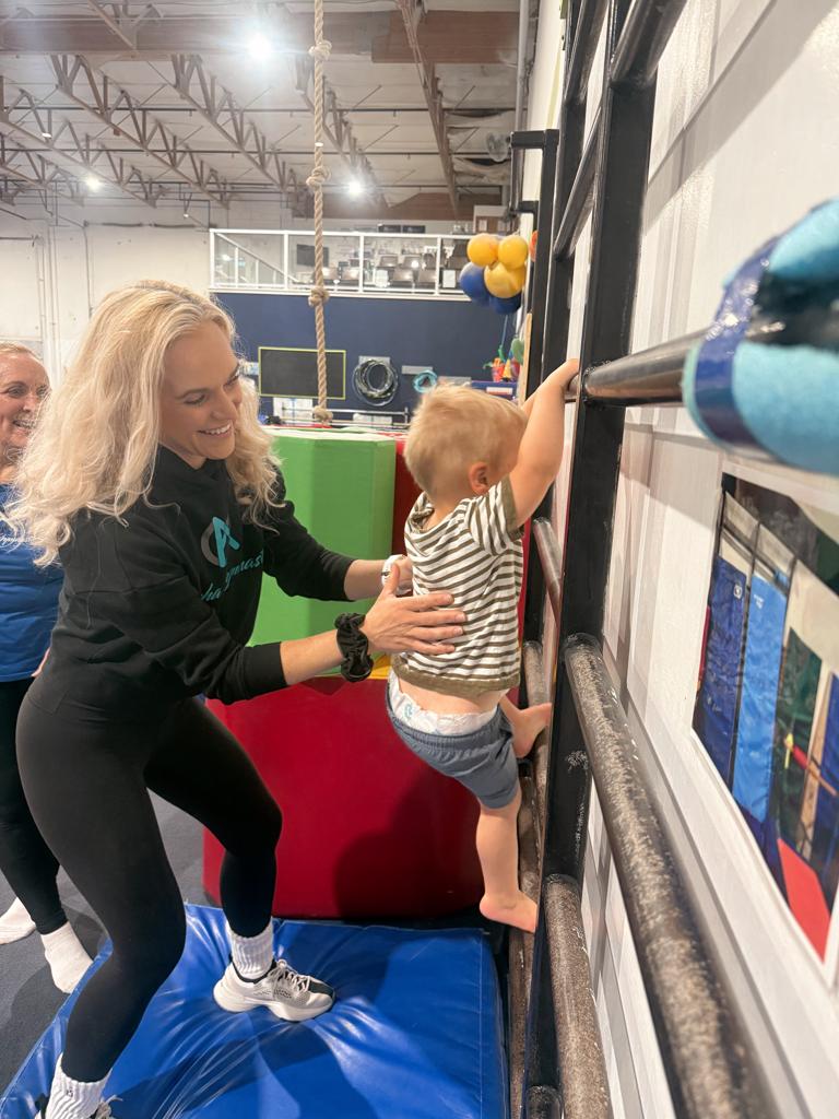 Proprioception is the body’s internal sense of where it is in space. In Born to Move at Alpha Gymnastics, babies build proprioceptive awareness through activities like rolling, pushing, pulling, climbing, and gentle weight-bearing. These movements help babies develop coordination, strength, and body control.
