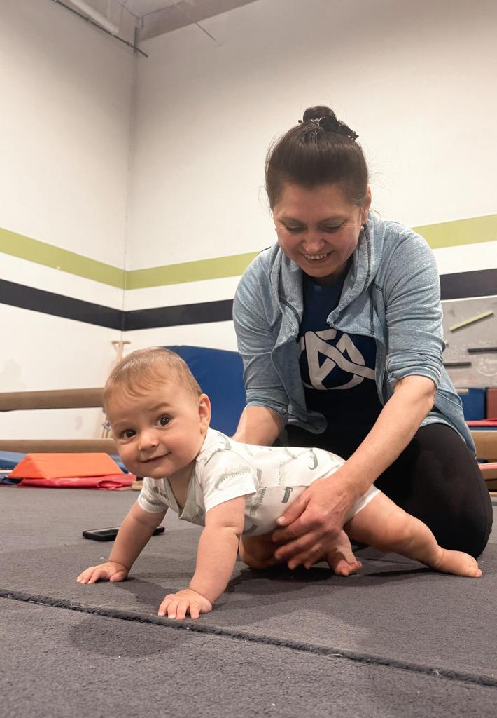 Born to Move at Alpha Gymnastics is a research-based infant development class for babies 3 months to walking age (up to 14 months). Through music, guided movement, and caregiver participation, this class supports vestibular development, early brain growth, motor skills, and parent-child bonding.